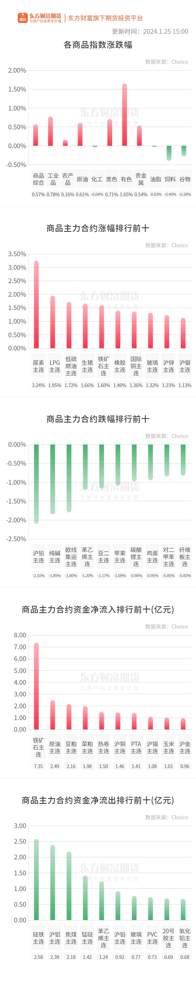 生猪:据农业农村部监测,1月25日“农产品批发价格200指数”为125.75,比昨天上升0.13个点,“菜篮子”产品批发价格指数为126.85,比昨天上升0.15个点。截至今日14:00时,全国农产品批发市场猪肉平均价格为20.05元/公斤,比昨天下降0.3%。(财联社)
